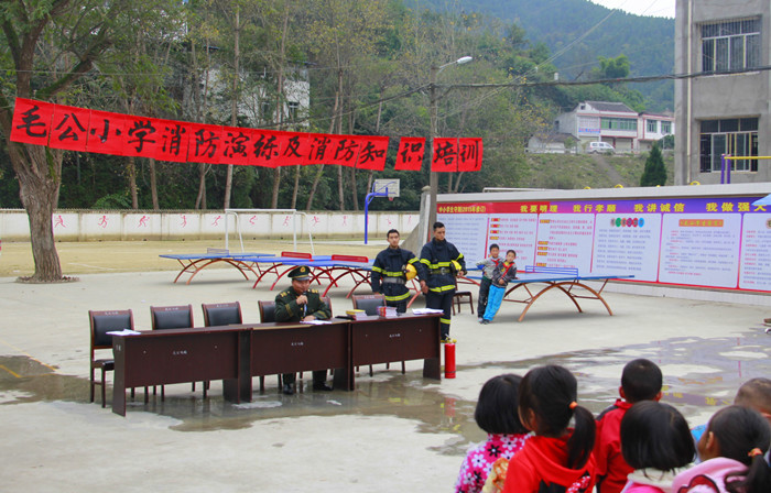 日,毛公乡政府、毛公乡团委、盐亭团县委、县消防大队、毛公卫生院在毛公小学联合开展了一次消防演练。演练结束后,由县消防大队人员为学生们进行消防知识培训,并分发了消防安全知识手册。